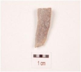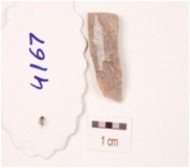 | Description / विवरण | A flake made on chert, flake scars on dorsal side, prepared platform and use wear marks on edges. |