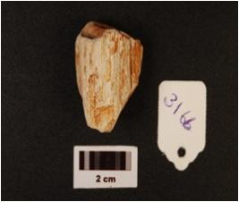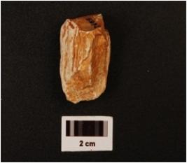 | Description / विवरण | Weathered core with two flake scars, few chippings visible on surface. |