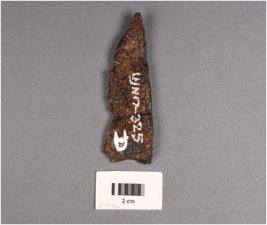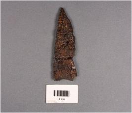 | Description / विवरण | Fragment of iron knife, pointed end, corroded surface. |