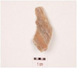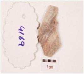 | Description / विवरण | A flake made on chert, irregular retouch marks on edges and prepared platform. |