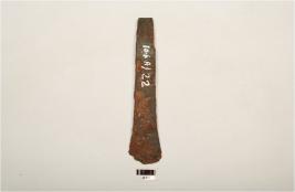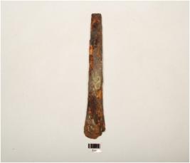 | Description / विवरण | Iron chisel, sharp edge with slightly broken, rectangular in section, flat surface, rusted in codition. |