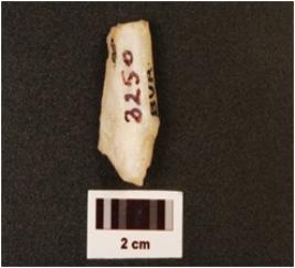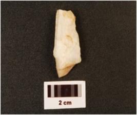 | Description / विवरण | A quartz core with three blade scars on surface, smooth surface and use wear marks on edge. |