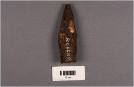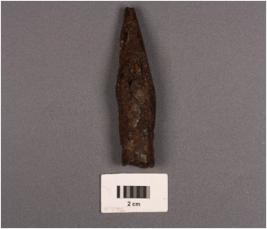 | Description / विवरण | Fragment of iron nail, pointed top hollow from incised, thin in character rusted. |