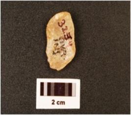 | Description / विवरण | A quartz flake with smooth and cortex on dorsal, use wear marks on edges. |