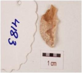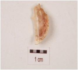 | Description / विवरण | A flake made on agate, flake marks on dorsal side and irregular retouch marks on edges. |
