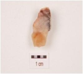 | Description / विवरण | A flake made on chalcedony, diffused bulb on ventral side, flake scars on dorsal side and irregular retouch marks on edges. |