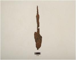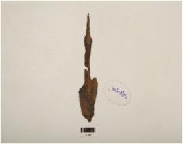 | Description / विवरण | A Arrowhead made on iron, slightly broken on one shoulder, pointed one end, rusted surface, rectangular in section. |