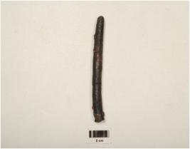 | Description / विवरण | A nail made on iron, elongated body, broken at top end, intact other end, rusted surface, circular in section. |