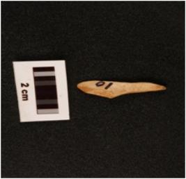 | Description / विवरण | A chert blade with sharp cutting edges, pointed from one end and flake scars on dorsal surface. |
