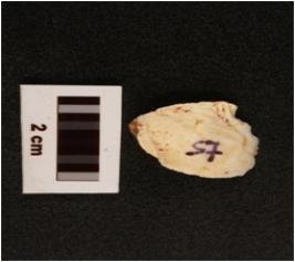 | Description / विवरण | Chert scraper, sharp working edge and cortex visible on one side of surface. |