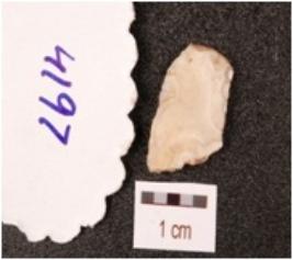 | Description / विवरण | A flake made on chert, flake scars on surface and diffused bulb on ventral side. |