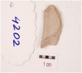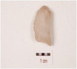 | Description / विवरण | A flake made on chert, flake scars on surface, prominent bulb on ventral side and use wear marks on edges. |