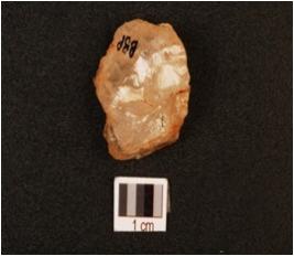 | Description / विवरण | A quartz core with parallel flake scars on the surface, preapred platform. |
