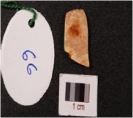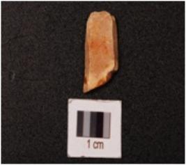 | Description / विवरण | A chert blade with a prepared platform, diffused bulb on ventral side and two ridge on dorsal side. |