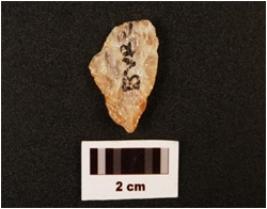 | Description / विवरण | A flake based quartz side scraper, cortex is visible. |
