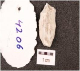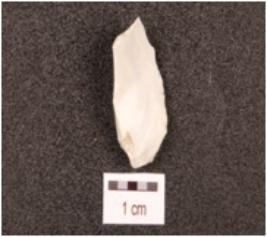 | Description / विवरण | A flake made on chert, flake scars on surface midridge on surface. |