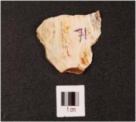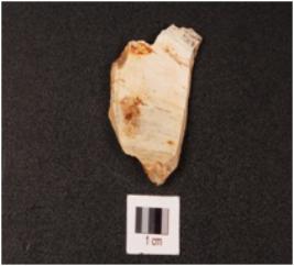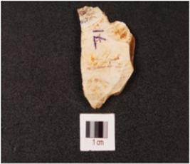 | Description / विवरण | Chert flake with flake scars on surface. |