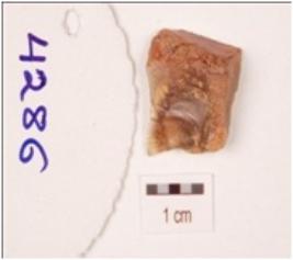 | Description / विवरण | A point made on chalcedony with cortex on the dorsal surface, visible ripple scars on the under surface. |