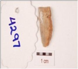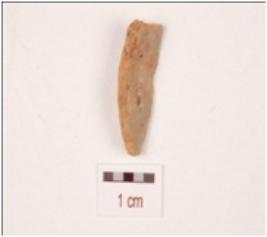 | Description / विवरण | A blade made on chert with mid-ridge on the dorsal side with cortex retained round the edge, broken at one end and rectangular in section. |