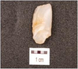 | Description / विवरण | A scraper made on chalcedony with ripple marks around the surface, prepared platform and irregular retouch along the cutting edges. |
