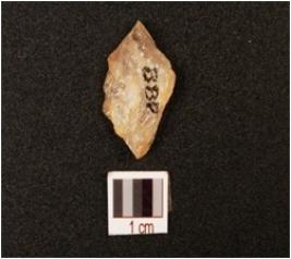 | Description / विवरण | A quartz point with cross flake flake scars on the surface, prepared platform, prominent bulb at ventral side. |