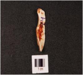 | Description / विवरण | Chert blade with a ridge dorsal side, diffused bulb ventral side and cortex partly intact. |