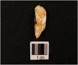 | Description / विवरण | A micro single ended burin, grooved lines at one end. |