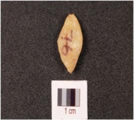 | Description / विवरण | Chert flake, pointed from both side. |