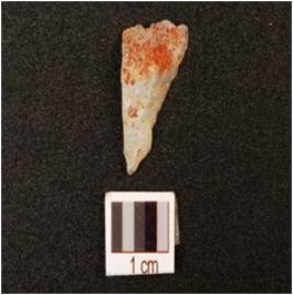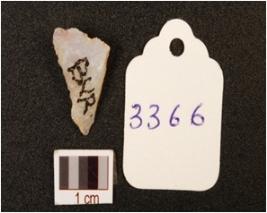 | Description / विवरण | A point made on quartz flake, prepared platform, bulb is absent, use wear marks along pointed end, visible cortex. |