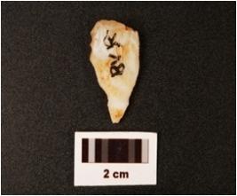 | Description / विवरण | A quartz single ended burin, prepared platform, single ridge, prominent bulb at distal end. |