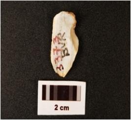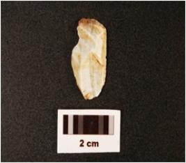 | Description / विवरण | A agate concave scraper with cross flake scars on the surface, diffused bulb at ventral side. |