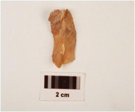 | Description / विवरण | A single ridged chert blade, prepared platform, diffused bulb at ventral side. |