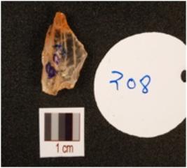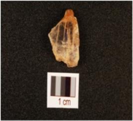 | Description / विवरण | A rock crystal flake with flake scars on surface and use wear marks on working edge, translucent. |