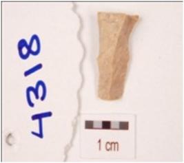 | Description / विवरण | A chert flake with mid ridge on the surface and triangular in section. |