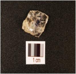 | Description / विवरण | A rock crystal blade with prominent single ridge on dorsal triangular in section, use-wear marks on working edge and translucent. |