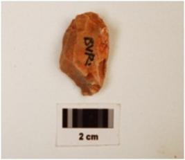 | Description / विवरण | A chert core with cross fake scars on the surface, prepared platform, visible cortex. |