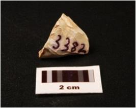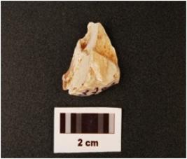 | Description / विवरण | A chert core with parallel flake scars on the surface, prepared platform, uneven surface. |