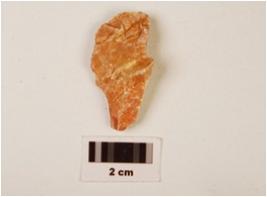 | Description / विवरण | An unmodified chert flake with parallel flake scars, prepared platform. |