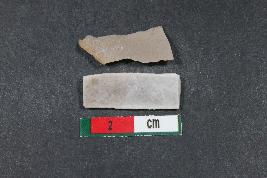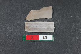 | Description / विवरण | A rectangular parallel sided blade with two dorsal ridges and smooth surface. The smaller piece has one dorsal ridge . |