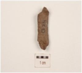 | Description / विवरण | Parallel sided chert blade, intact, diffused bulb with striking platform, use-wear marks on both working edge and blade scars on dorsal surface. |