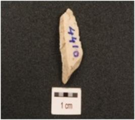 | Description / विवरण | Parallel sided blade, proximal end broken, ridge on dorsal surface and use wear marks on both surface. |