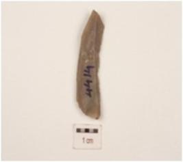 | Description / विवरण | Parallel sided blade, proximal end broken, use wear marks on both working edges and mid ridge on dorsal surface. |