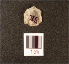 | Description / विवरण | A rock crystal scraper with flake scars on dorsal and use-wear marks on working edge, translucent. |