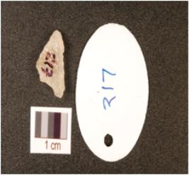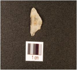 | Description / विवरण | A rock crystal flake with flake scars on dorsal and use-wear marks on working edge, translucent. |