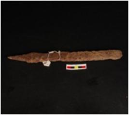| Description / विवरण | Iron plough large in size uneven surface and one pointed end. |