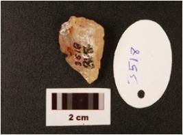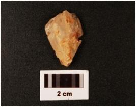 | Description / विवरण | Flake made on quartz, proximal end broken, irregular retouch, distal end intact, triangular shape, |
