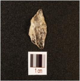 | Description / विवरण | A rock crystal scraper with flake scars on dorsal and use wear marks on working edge, translucent. |