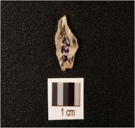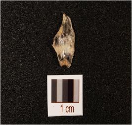 | Description / विवरण | Rock crystal flake with flake scars on surface and use wear marks on working edge, smooth ventral and translucent. |