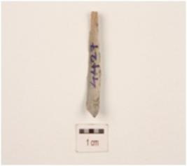 | Description / विवरण | Parallel sided chert blade, both ends broken, use-wear marks on both working edge and ridge on dorsal surface. |