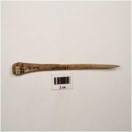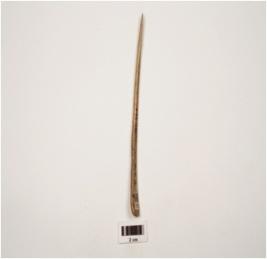 | Description / विवरण | A bone point with tapered on one end, pointed one end, other end flat and broad, rectangular in section slightly curved and well polished surface. |